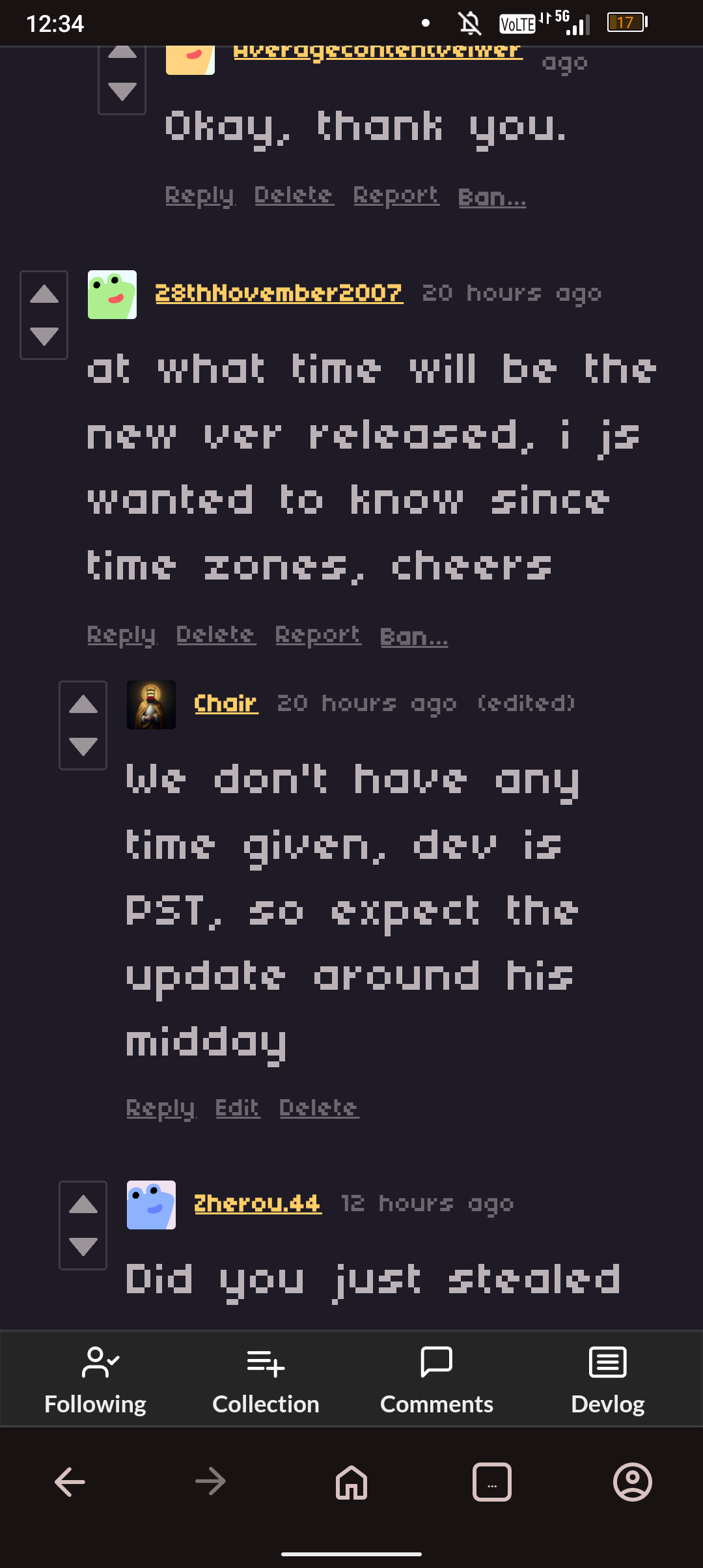 I find it crazy how your communtity really wants that update which is...interesting because for some people the update will release very late for them or EVEN THE NEXT DAY since the dev is in PST (u said that Chair,Im watching🤨) and i did some math and pinpointing and noticed the more east u live from PST places like california,vancouver and etc(basically the mostly western states of the us or canada which excludes the islands and alaska) enough of this yap but for me im literally 12 HOURS AHEAD so...by 12am possibly MIDNIGHT or LATER on 2nd december for me the update will release since chair also mentioned moon will release during midday in PST (MY condolences to anyone who lives even further east who have to wait even longer) also if u read till this far have a free 🍪🍪