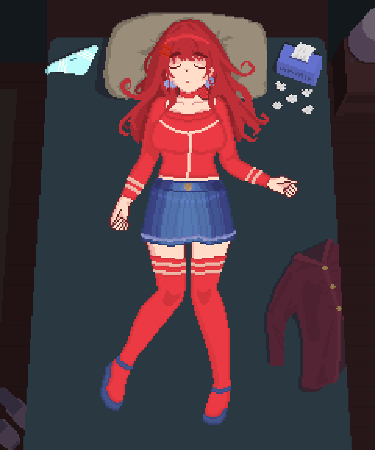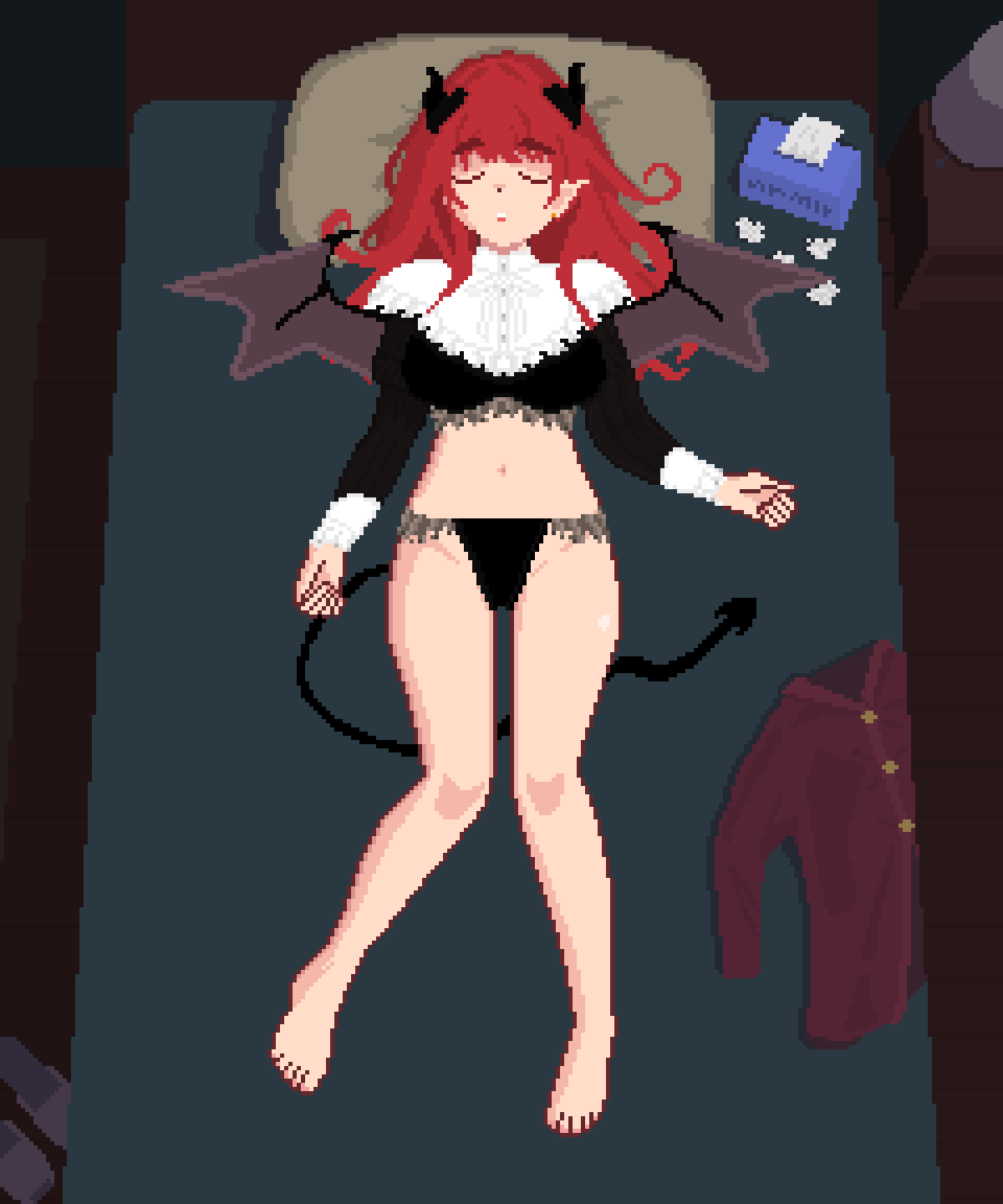 Also during night, facial expressions, and reactions could be expanded imho. Give her dialogue, when she is awake pls. Option to hide under blanket if Kan comes, and try to make her come when he watches (and if she is awake, might respond to him like Can:"you good"her:"yes, you can leave""you sure, youre face is red?""y-yes please leave now *orgasms*", also will try to endure and complain later in cute fashion..). I hope you can eventually do more to her friend too. Make her watch, what you do to her. Also have them both in the same window would be cool -> make them sleep in same bed?